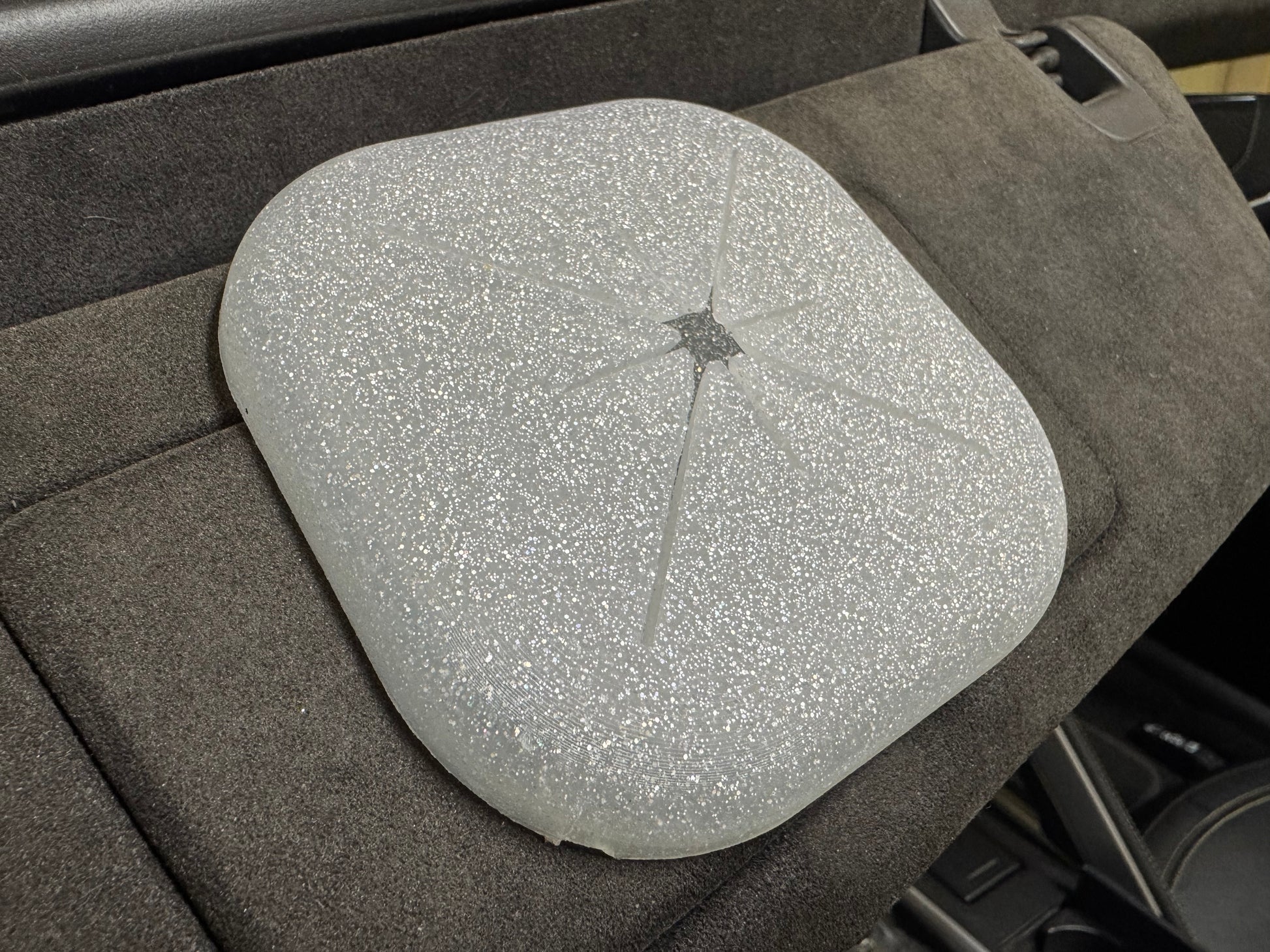 Glitter versions of the Closer Coaster contain tiny metallic flakes embedded within the silicone. While they’re fully encapsulated and safe in most situations, metallic glitter can sometimes react in microwave ovens. For this reason, we recommend avoiding microwave use with glitter models — or, if necessary, testing briefly on low power and discontinuing use if any sparking or discoloration occurs.